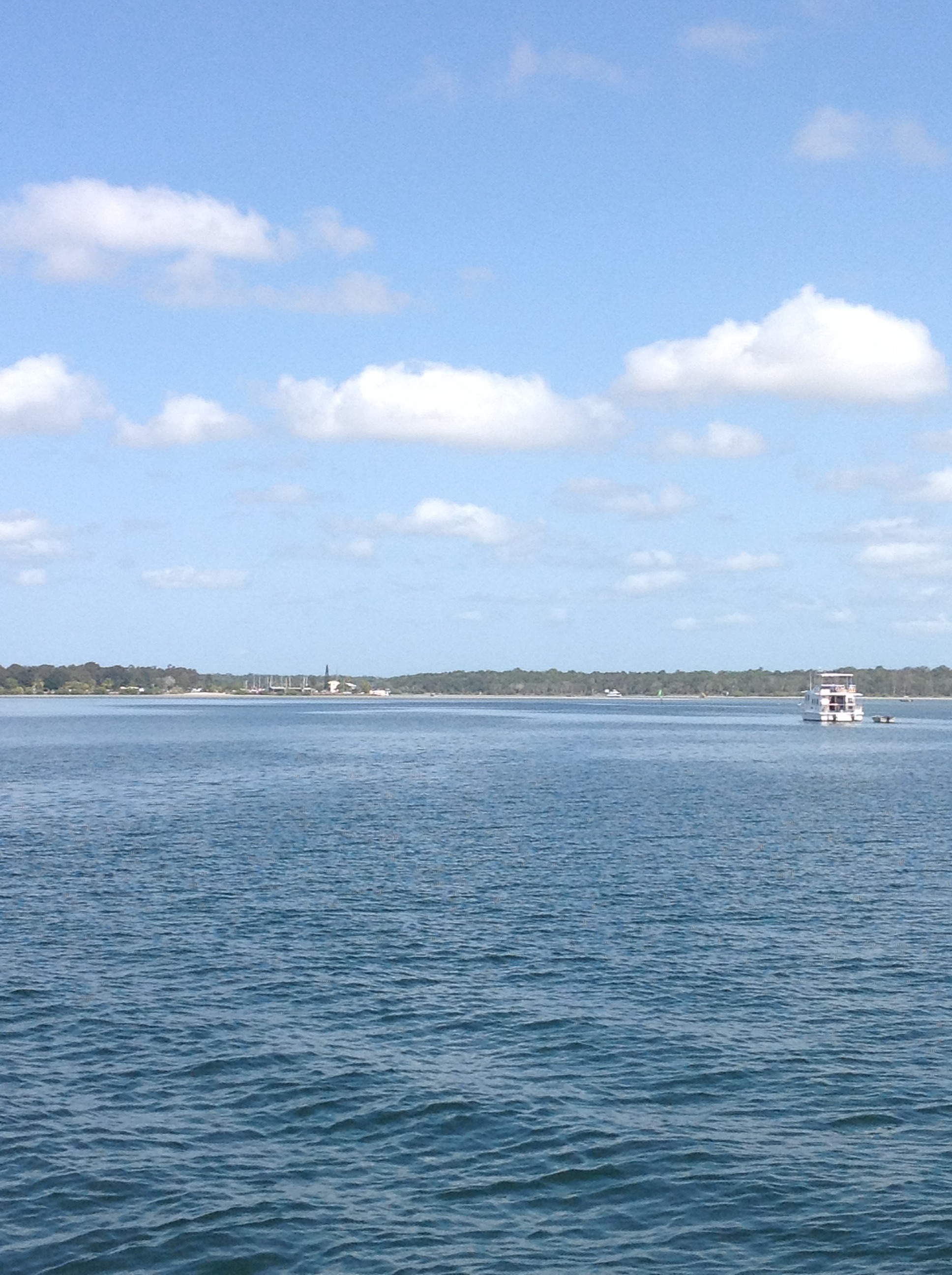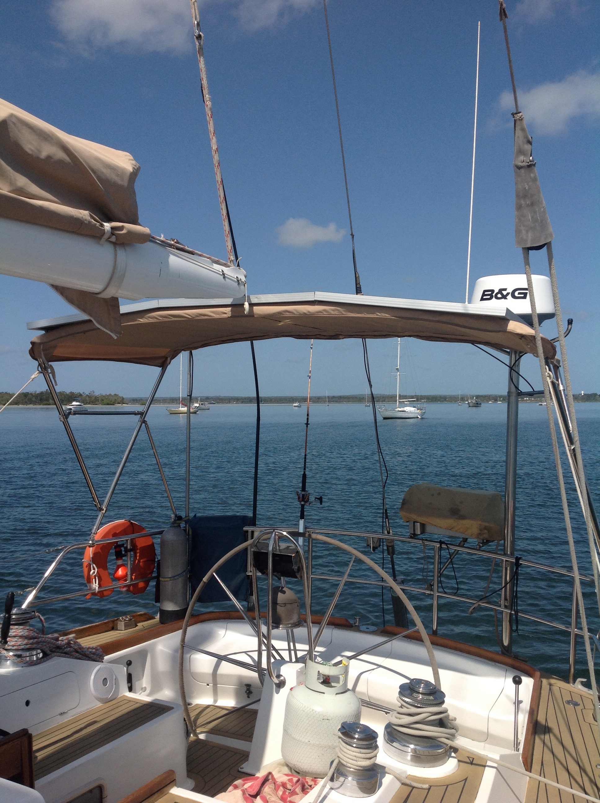 I went to sit on deck as it was warm as, and watched things going on all around. There was a little fisho on the beach looking like they were gathering bait. Lots of little tinnies going back and forth. A jet ski came out of Tin Can Bay at about 40 knots, did a big turn and whizzed back in at 40 knots. A houseboat, came by, tried to drop anchor, couldn’t find how the let it go, then did, immediately picked it up and headed off! A little sailing boat came out, with both fenders on, put up the sails and sailed back and forth across the creek, never making forward progress, and doing some awful tacks, then going back in. A massive trawler came out and dropped his gantries as headed up towards Wide bay. It was non stop action, and great to while away the time watching!