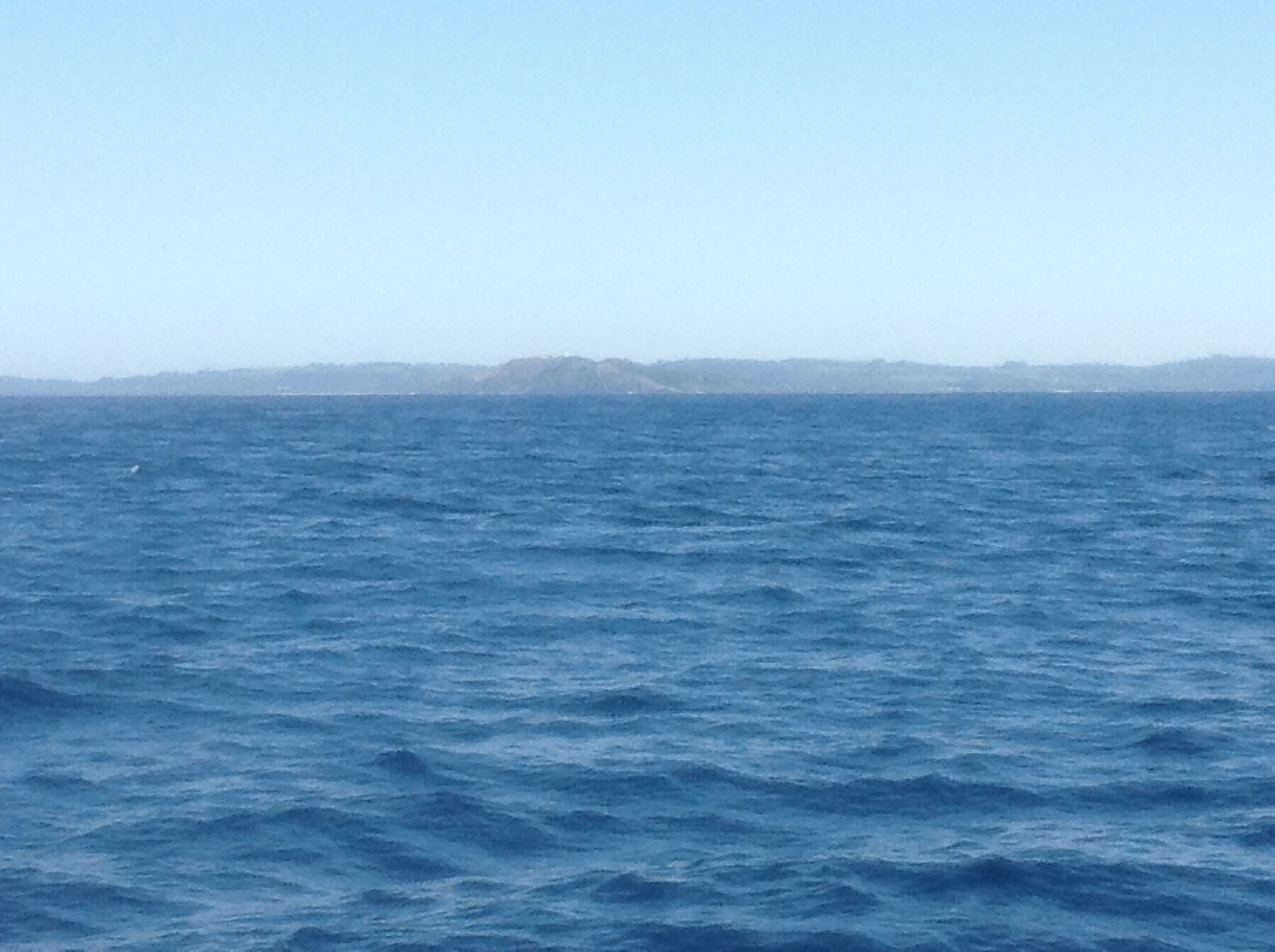 Clare made bread, Paul filled the fuel from the gerry. Pete played with the B&G and I was on look out. As I was sitting comfortably in the stern, watching Cape Byron draw steadily nearer, with Paul and Pete concentrating on refuelling, suddenly my view was blocked out by the belly of a whale who breached almost right in front of us. The most incredible grandstand view of almost the whole whale! I yelled out in surprise, convinced he would be either on our foredeck or we would run him over, but of course he was back in the water before the others had a chance for a look and Clare popped up from below with her camera. I cannot believe I didn’t have a camera of some sort handy, but I have the most amazing picture of the whale in my memory!