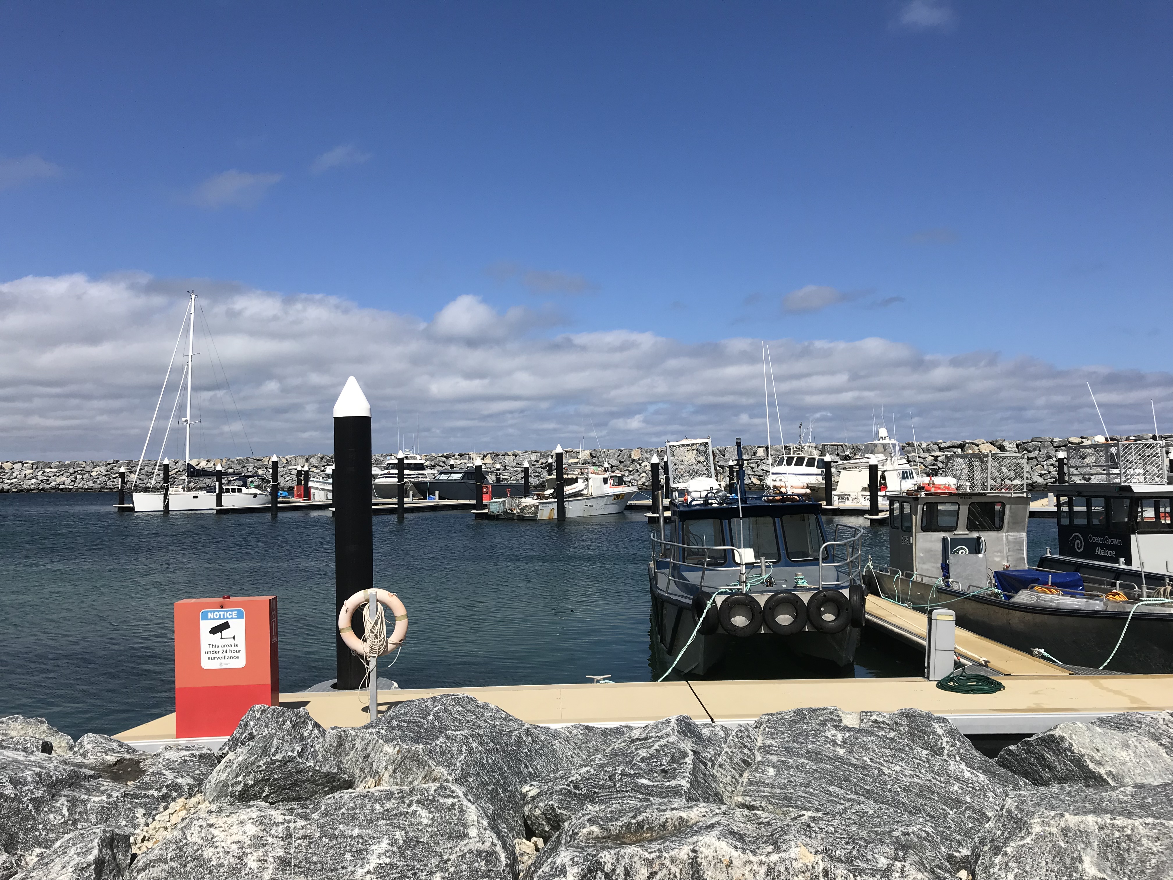 We decided that we should look for a winery after lunch, as our red supplies were low in Pilgrim, but each of the first two we stopped at were closed. Third time lucky though, McLeod Creek Estate welcomed us, with just 3 wines to try and a winner of a 2013 Merlot. After this, we all felt pretty lazy and decided to head for Augusta and our camp site. On the way, having missed the turning for the site, we drove out to Augusta boat harbour, a small, seawall protected marina which looked brand new. We had a little walk around to check it out, nipped to town to buy supplies, then checked in to our camp site.