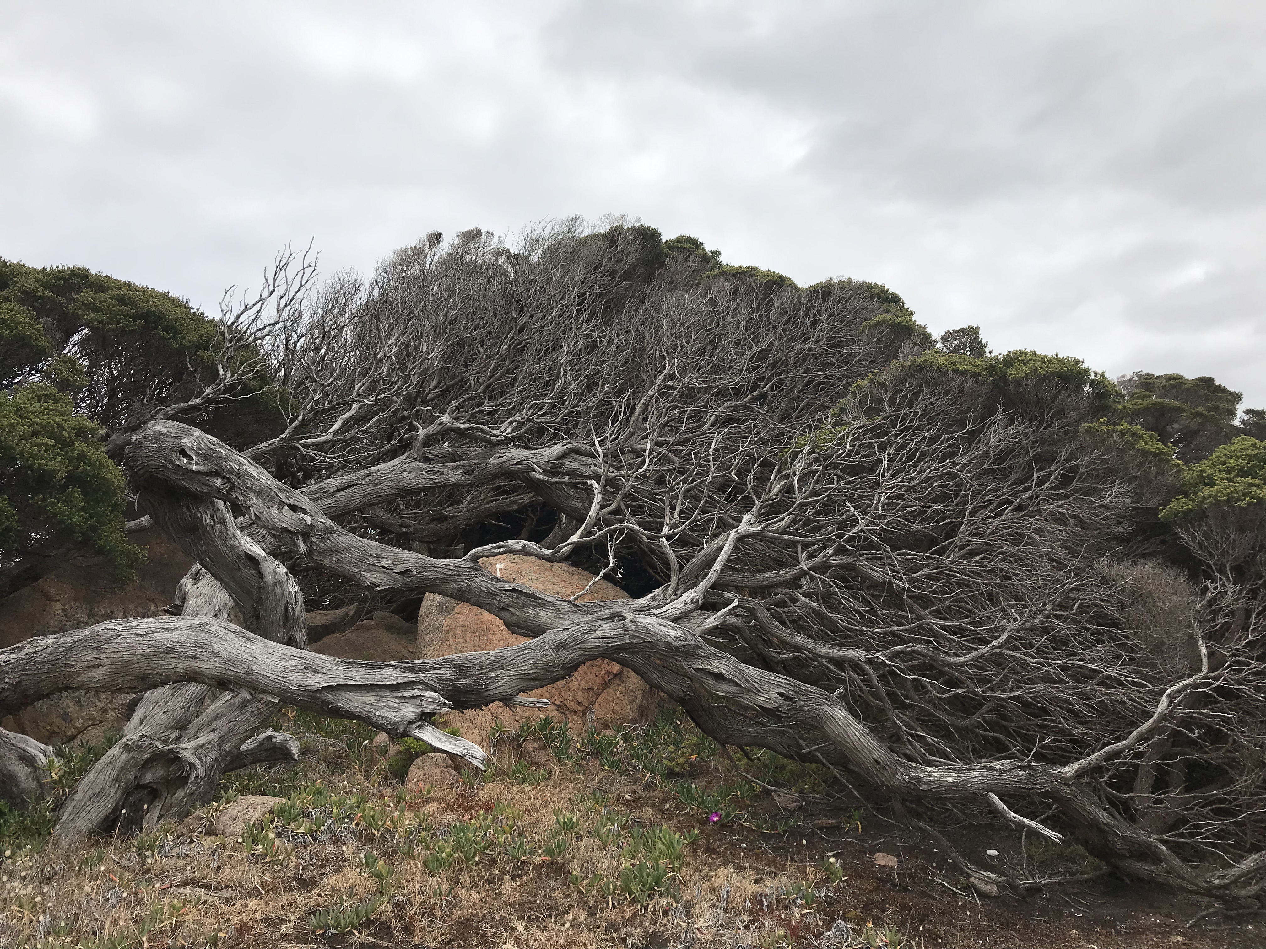 Around the precinct there were lots of beautiful wild flowers. WA is of course renowned for its diversity of endemic flora, we had no idea what most of the flowers were but they were so pretty we had to photograph them. The low scrub was tortured by the wind, blown into the shape of the land it covered, by the very strong prevailing winds.