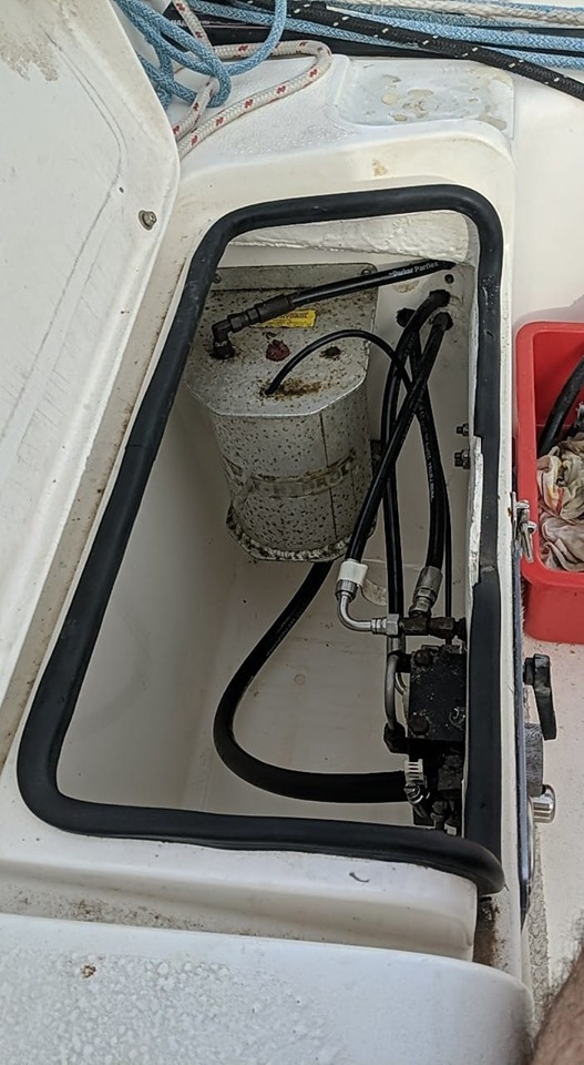 There has also been some work in the hydraulic department. We have had issues in the past and we found quite a bit of hydraulic oil when we were surveying the boat. We traced this down to a corroded reservoir and a leaky suction hose. Again we decided to improve the system while fixing. The reservoir was moved from the steering quadrant compartment to right next to the hydraulic panel and the suction hose replaced. We also found a much better way to fix the hydraulic pump when it gets an air lock. Of course now we have a new technique, we’ll never need it!