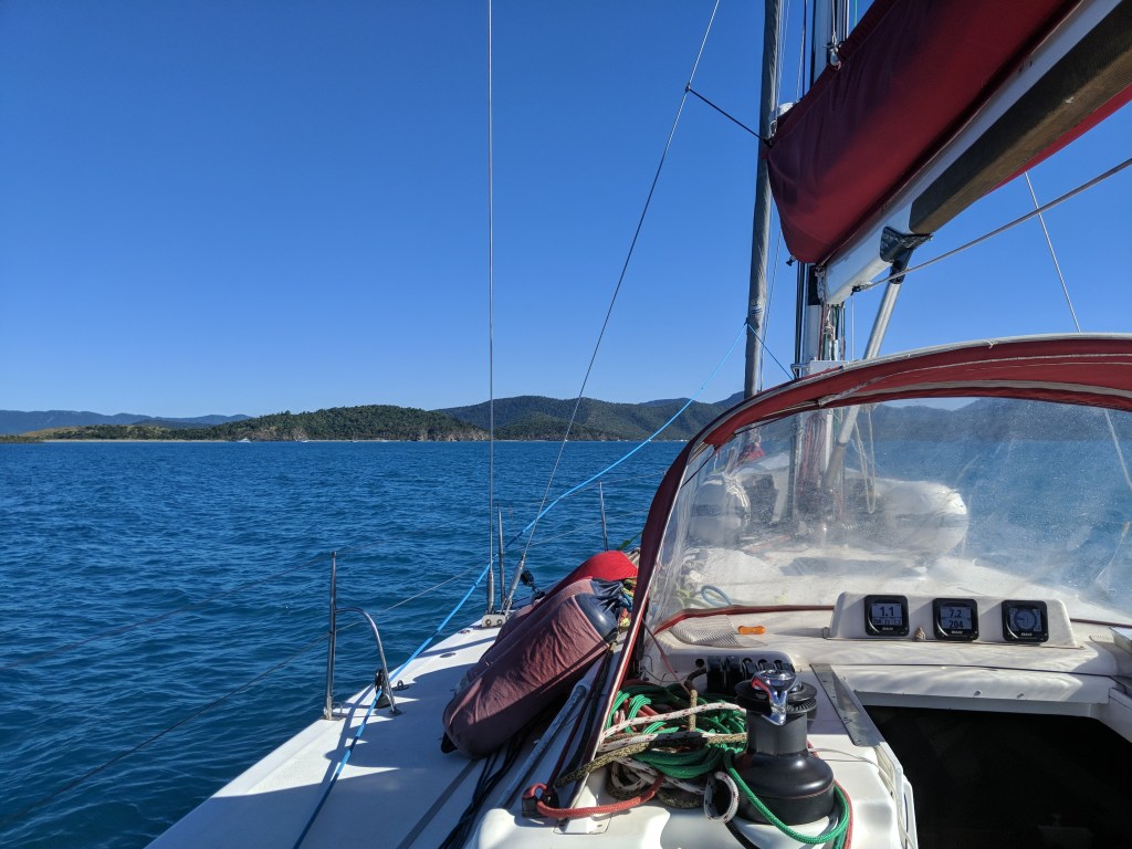 Blow from the south they said, and blow from the south it did. We set off from South Percy in 20+ knots and it stayed up there most of the day. We sailed on with headsail only all day. The only real decision for the day was Scawfell or Brampton as our next anchorage. Scawfell was a little closer to Percy but 20 miles further from our next destination. Greg had booked a flight from Hamilton Island the next day leaving in the afternoon so we needed to get there in the morning. As such we chose Brampton. We arrived after dark but I knew the anchorage well. There may have been some short words at some point as I tried to explain how some of the features worked on the chart plotter to some other crew member, in the dark, after a long day and under pressure of not running aground. Anyway, we survived the night.
