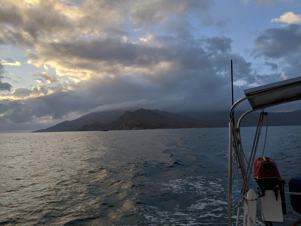 We anchored in Shark Bay about a mile in from the tip of Cape Upstart. We had been sailing in 15-20kts all day but as we set anchor it started to get angry. Through the night we were seeing gusts to 30-35kts and Wine-Dark Sea was pulling at her anchor hard. We let out anchor to 7:1 scope which gave us security but also meant we just sailed around on a bigger arc. Things had settled down by morning as we headed out on the final leg to Magnetic Island.